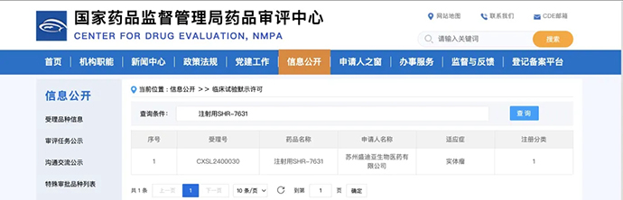 近日,恒瑞醫藥子公司蘇州盛迪亞生物醫藥有限公司研發的ADC藥物“注射用SHR-7631”通過國家藥品監督管理局臨床默示許可(受理號:CXSL2400030),適應癥為實體瘤。